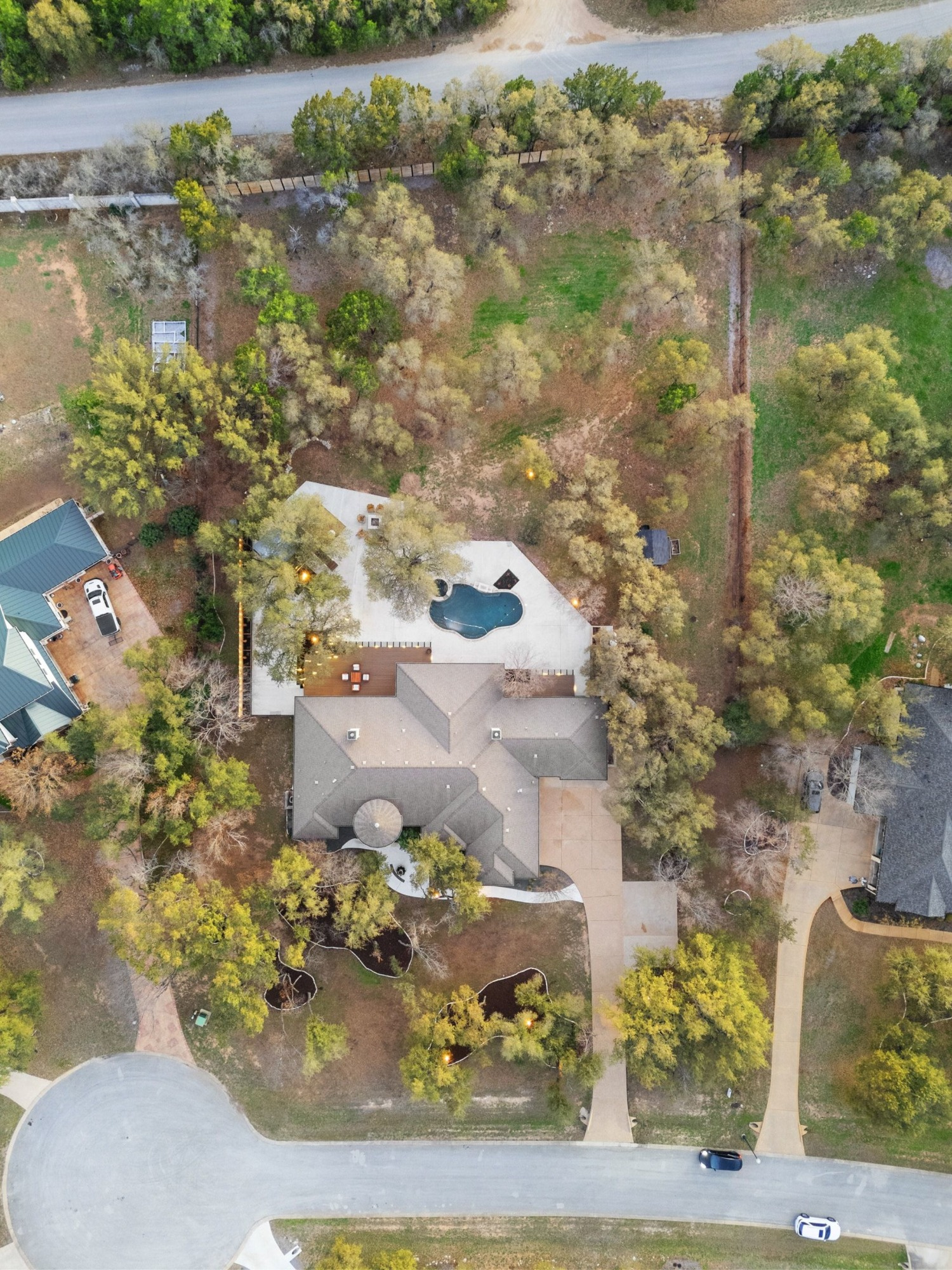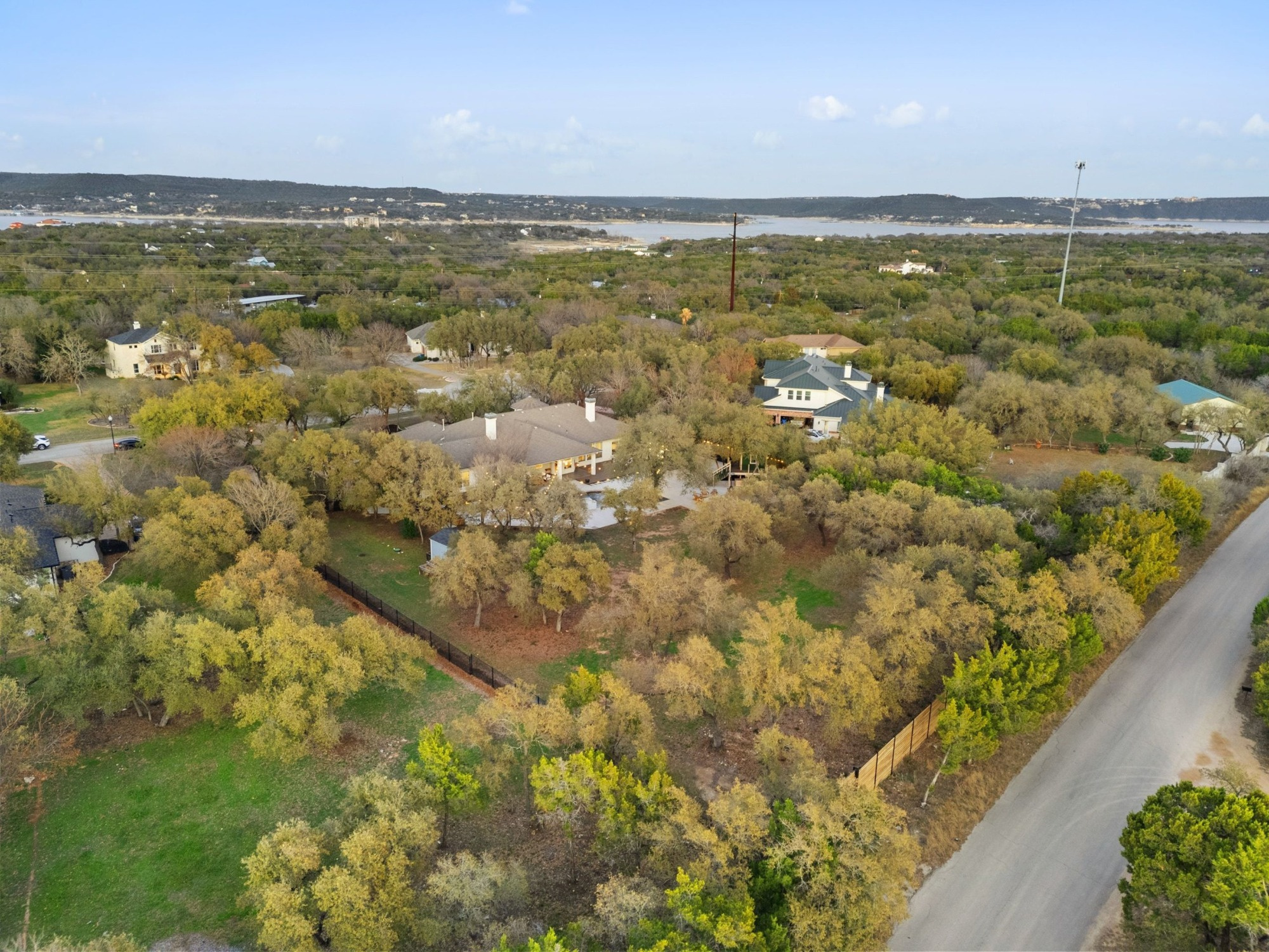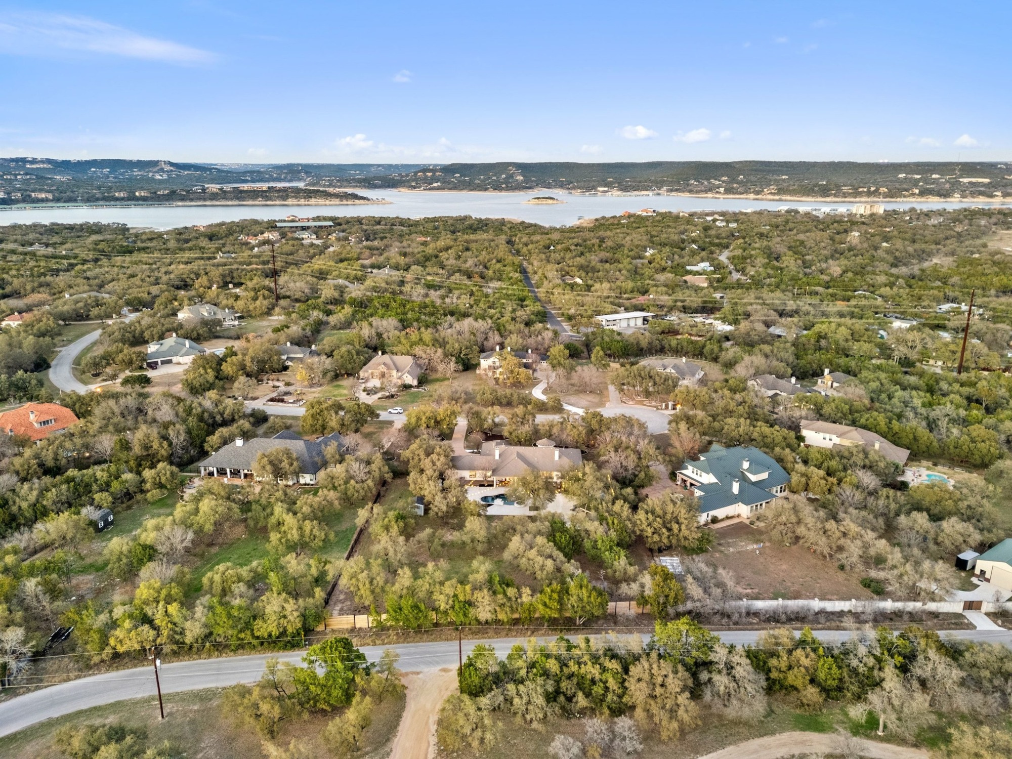 Resort-style outdoor living is at its finest with sunny patios, expansive decks, fire pit, pool, spa, waterfall, and a charming treehouse. A motorized 16-foot gate at the back fence along Rocky Ridge Road provides convenient access and flexibility for future improvements. Only a three-minute drive takes you to Emerald Point Marina, Bar, and Grill on Lake Travis, while nearby dining, entertainment, shopping, and recreational opportunities are within easy reach.