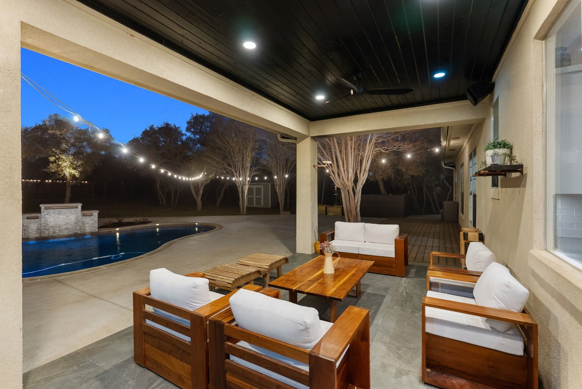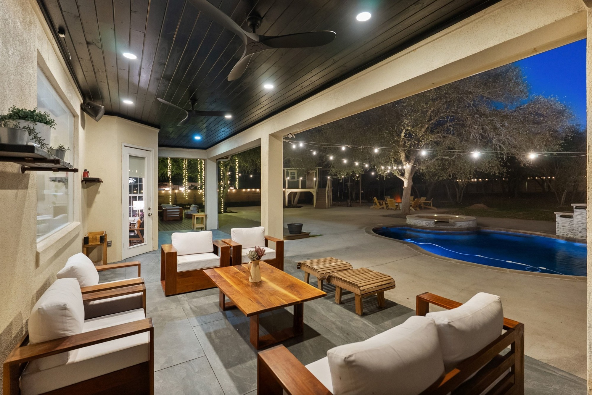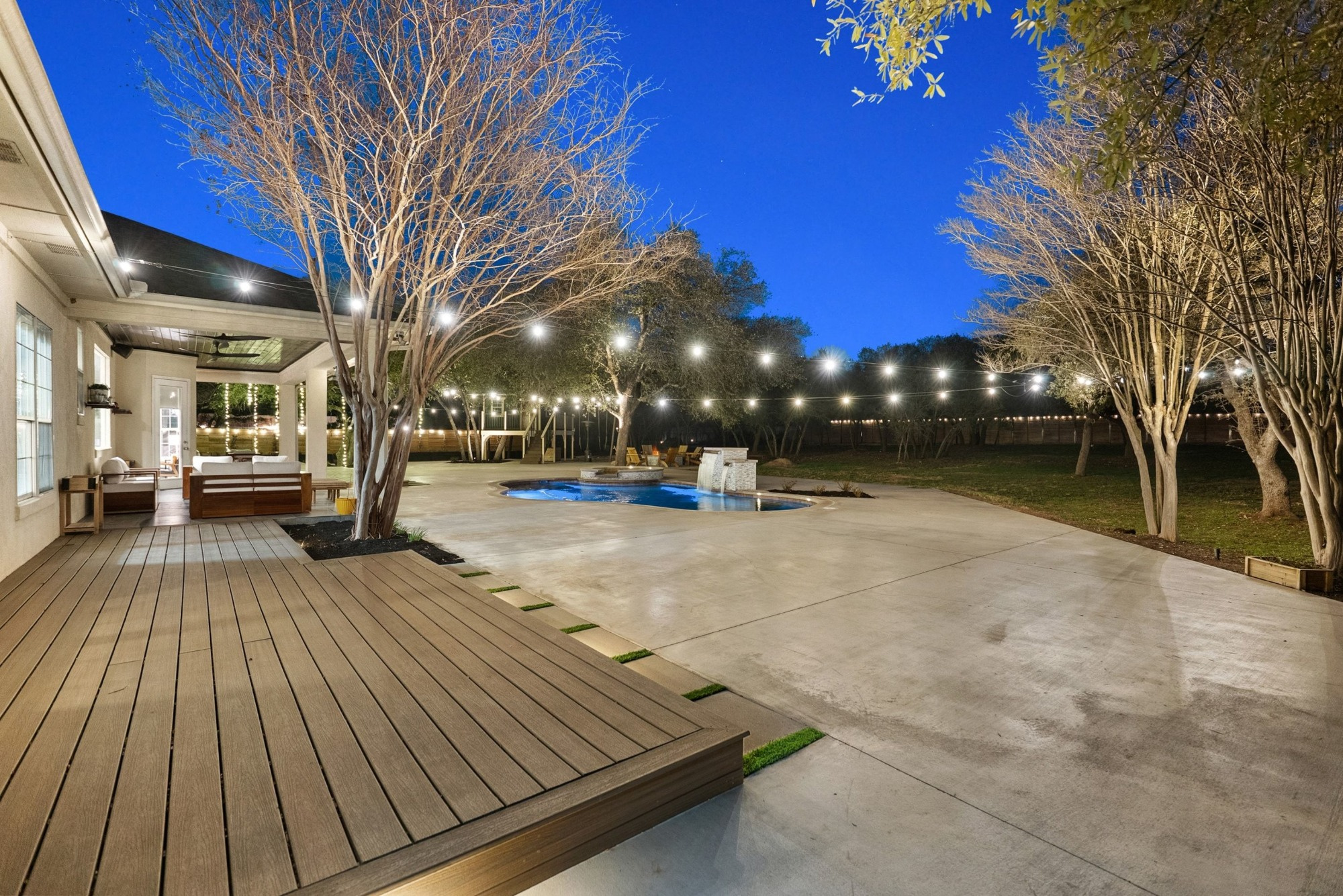 Resort-style outdoor living is at its finest with sunny patios, expansive decks, fire pit, pool, spa, waterfall, and a charming treehouse. A motorized 16-foot gate at the back fence along Rocky Ridge Road provides convenient access and flexibility for future improvements. Only a three-minute drive takes you to Emerald Point Marina, Bar, and Grill on Lake Travis, while nearby dining, entertainment, shopping, and recreational opportunities are within easy reach.